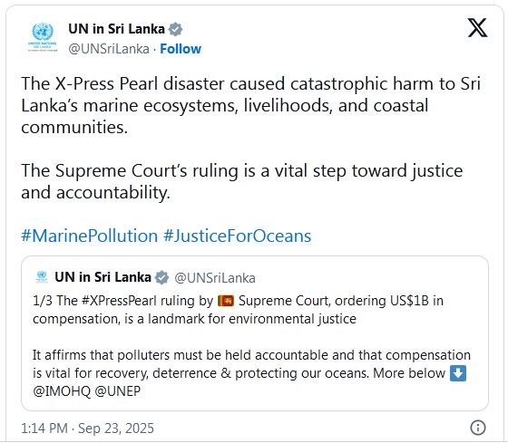 மேலும், பாதிக்கப்பட்ட கடலோர மக்கள் மற்றும் கடல் சூழல் அமைப்புகளுக்கு நீதியை வழங்க நீதிமன்ற உத்தரவுகள் முழுமையாக செயற்படுத்தப்பட வேண்டும் என அவர்கள் கோரிக்கை விடுத்துள்ளனர்.